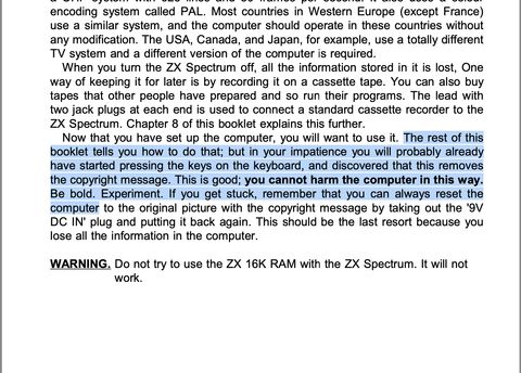 Reminded of my favourite line from a user manual ever. A few years back my Dad bought a ZX Spectrum off ebay that reminded him of one he owned and it still had the manual: