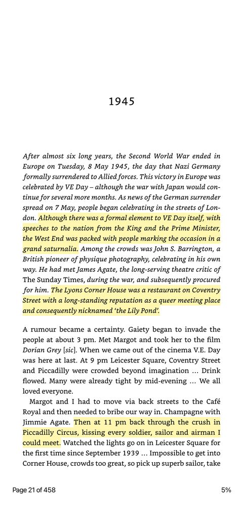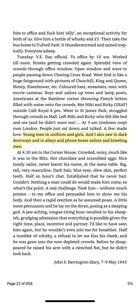 There’s a lot of VE stuff over the news in the UK at the moment. Earlier in the year I read this book of gay men’s diaries, and the first entry is this great one about a gay man on VE Day a perspective I’d never heard before
